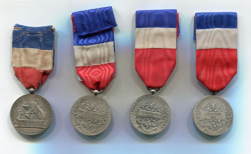 FRANCE - ARGENT 1er TITRE - QUATRE MEDAILLES du TRAVAIL :