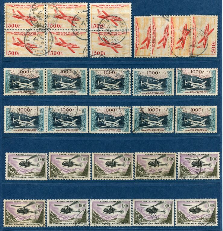 avion 26 300 F Lyon + Av 27 500 F Marseille + grand format Av 29 1000 F Paris + Av 32 500 F Fouga magister + Av 33 1000 F Provence + Av 37 1000 F Alouette.