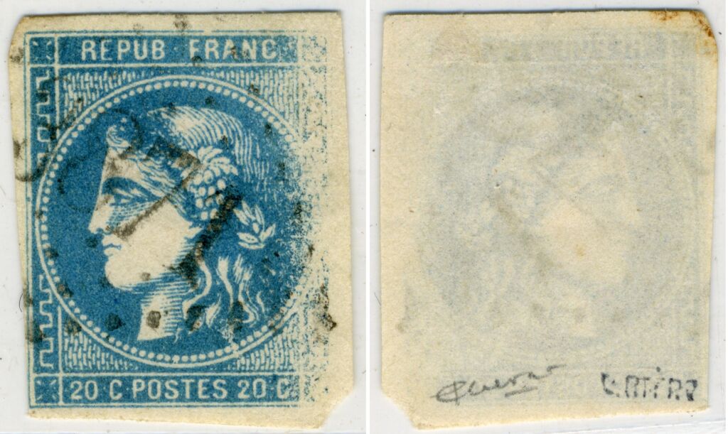 FRANCE - CLASSIQUE - 20c Bleu Cérès litho émission de Bordeaux.