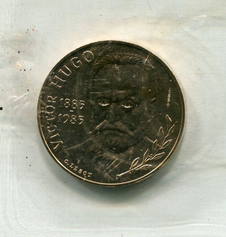 FRANCE - DIX FRANC VICTOR HUGO 1985 - ESSAI avec le mot Essai gravé dans le métal - FLEUR de COIN sous sachet d'émission Monnaie de Paris.