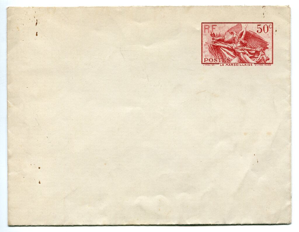 FRANCE ENTIERS POSTAUX - LA MARSEILLAISE de RUDE 1940 - enveloppe avec timbre à 50 c rose directement imprimé sur le document au type du timbre mobile n° 315.