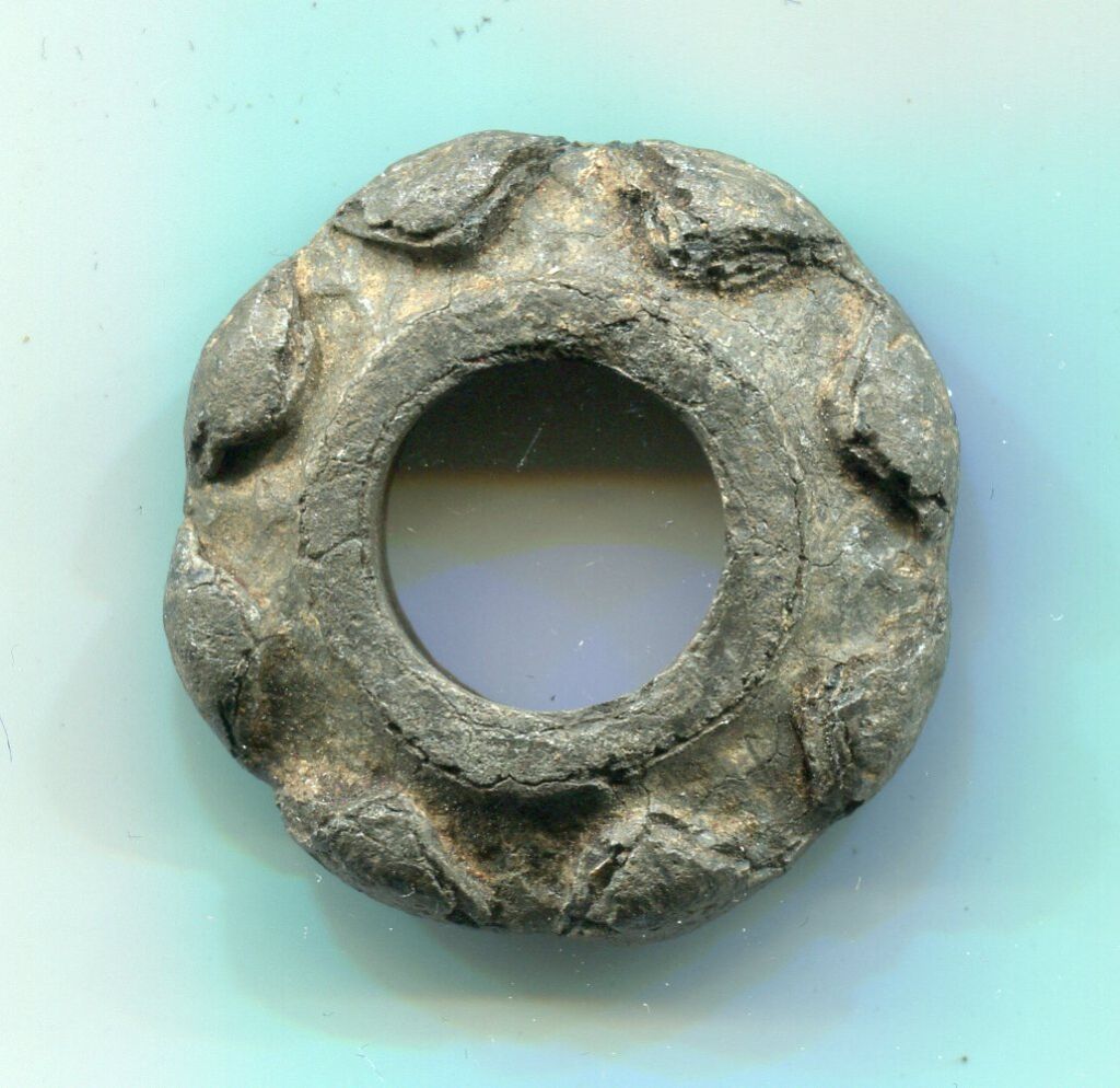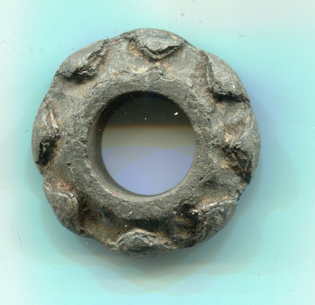 FRANCE - MONNAIE PREMIERE ou OBJET VOTIF du MONDE CELTIQUE, 2e à 1er siècle avant Jésus Christ - TRES GRANDE ROUELLE BITRONCONIQUE, à 8 gros globules triangulaires en circonférence - plomb, diamètre extérieur 31 mm ; épaisseur 9,5 mm - diamètre de l'axe 9,5 mm. - poids de 35,60 grammes - SUPERBE