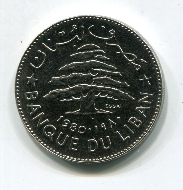 LIBAN - Une Livre nickel 1980, Cèdre - ESSAI avec le mot ESSAI gravé dans le métal.