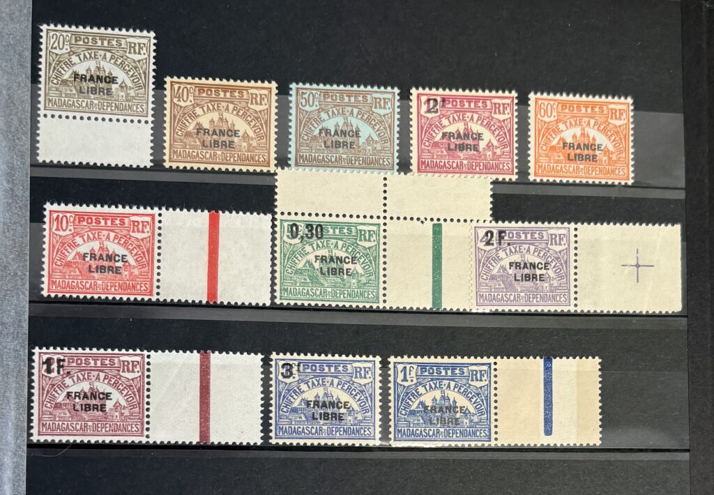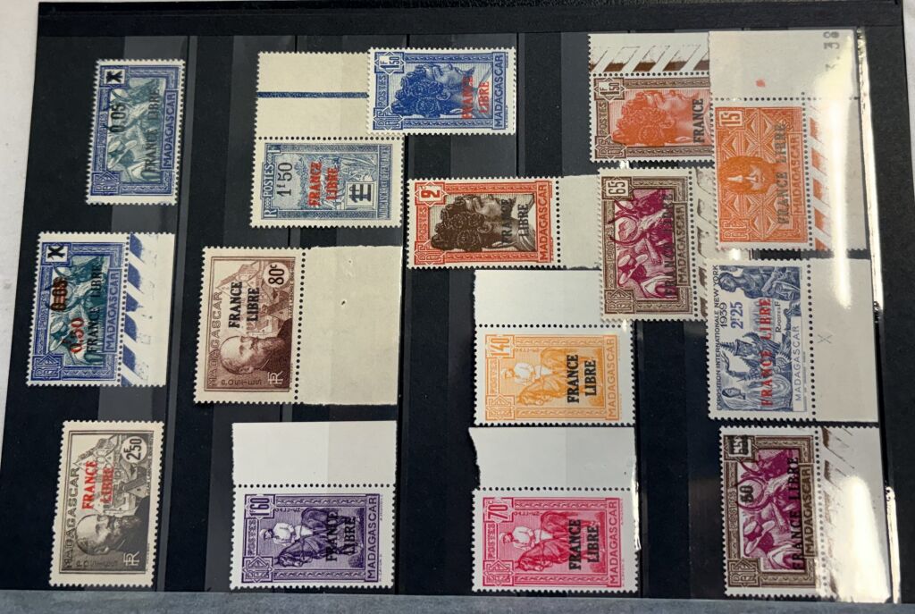 MADAGASCAR 1942, colonie française - très belle et rare collection des 45 timbres différents avec la surcharge " FRANCE LIBRE " :