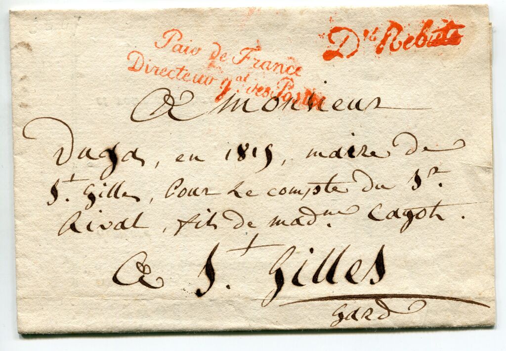 - sur 2 lignes en lettres cursives marque de contreseing du Directeur des Postes marquis d' Herbouville : " Pair de France / Directeur Gal des Postes " (Rochette-Pothion n° 2010).
