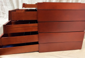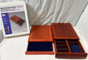 MATERIEL - Ensemble de cinq Box / tiroirs en bois de marque SAFE : un box pour les monnaies + quatre box pour petits objets en volume telles montres, tabatières, objets sculptés, bijoux etc…