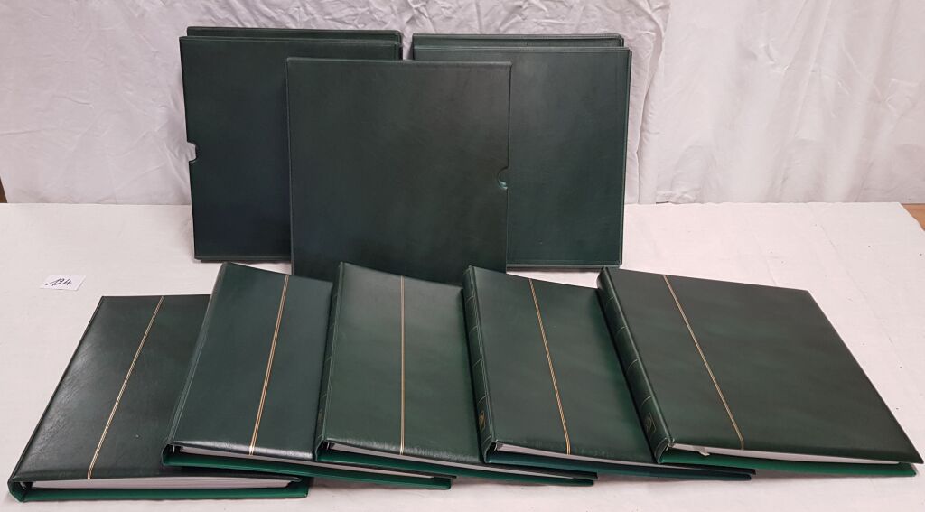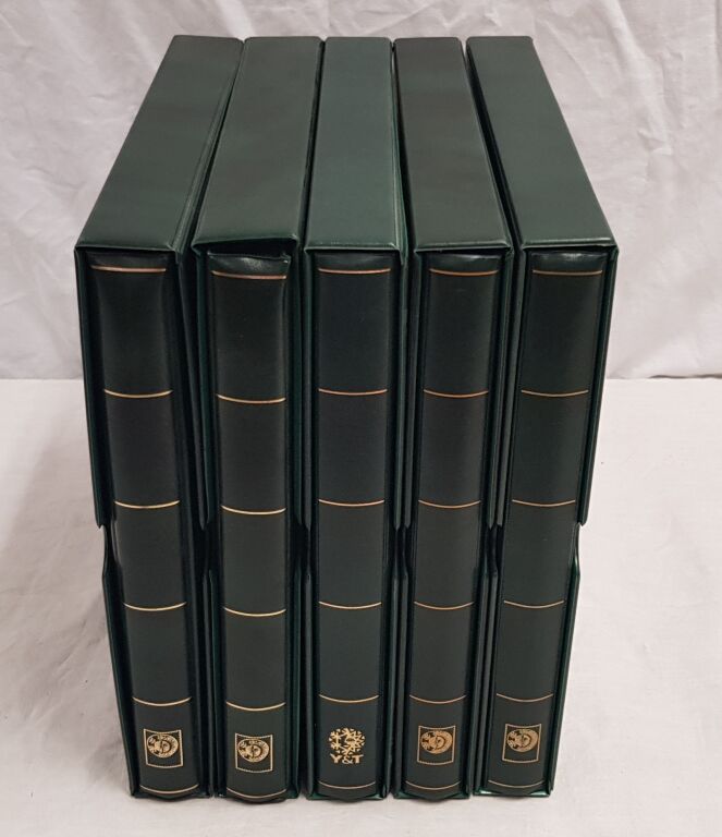 MATERIEL FRANCE - YVERT & TELLIER, ALBUM SUPRA LUXE 22 anneaux à mécanisme d' ouverture à plat - Intérieur complet années, du nouveau franc 1960 à 2008, avec 5 reliures vertes (réf 1388) avec leurs boitiers, solides feuilles 190 g avec pochettes Limpid installées pour une collection sans charnière.