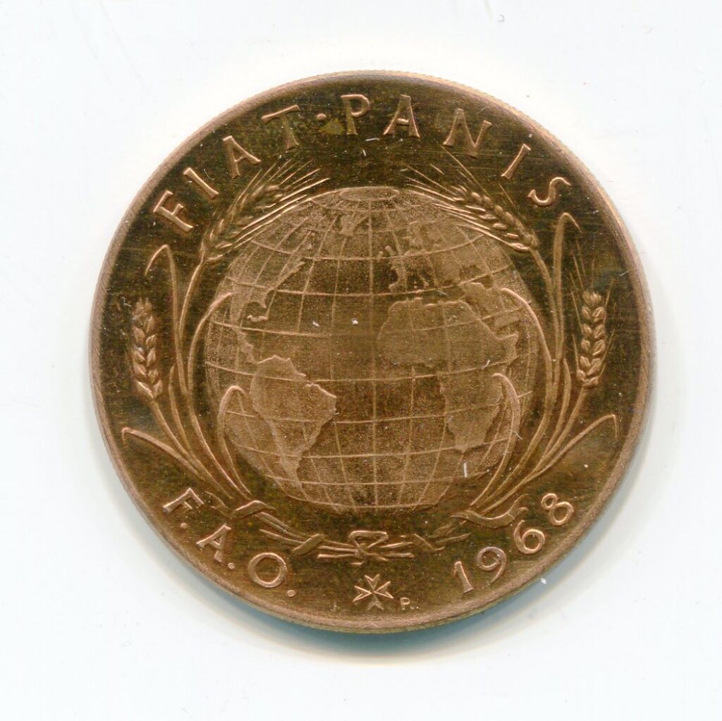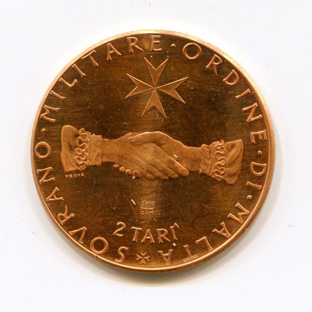 ORDRE MILITAIRE SOUVERAIN de MALTE - 2 Tari F.A.O. 1968 (fond mondial des Nations Unies de lutte contre la faim ) - Deux mains qui se serrent - Revers : mappemonde entourée d'épis de blé - 32 mm - bronze 8,88 grammes - non circulée, belle épreuve.