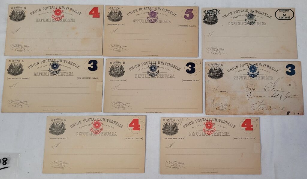 collection de huit entiers postaux " Union Postale Universelle " neufs et voyagé.