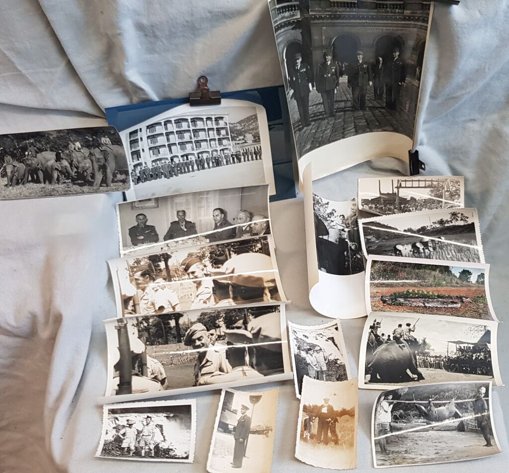 90 ( quatre vingt dix ) bromures tous formats divers amateur ou officiels Armée, de 6 x 9 cm à 18 x 24 cm - Scènes locales villages des hauts plateaux, prises d' armes, locaux extérieurs et intérieurs, hommes, officiers, paysages, éléphants ....