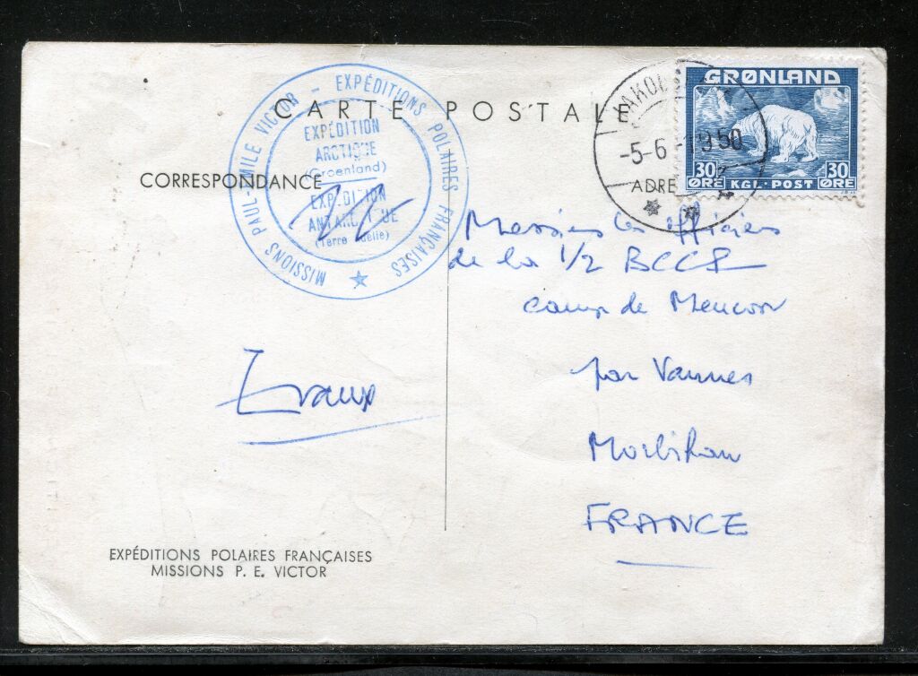 RARE DOCUMENT 1950 voyagé précurseur EXPEDITIONS ARCTIQUES FRANCAISES. ( * ).