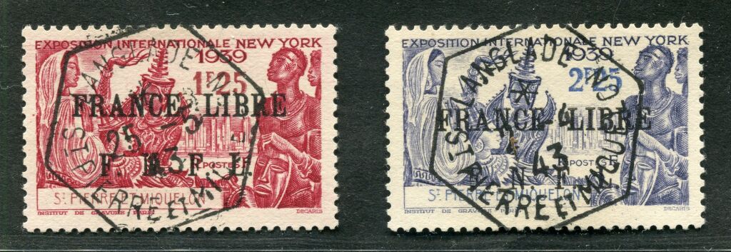 Timbres Exposition de New York 1939 avec surcharge FRANCE LIBRE F.N.F.L.