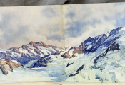 JOINTE : panorama dépliant en couleur du glacier de la station Eismeer.