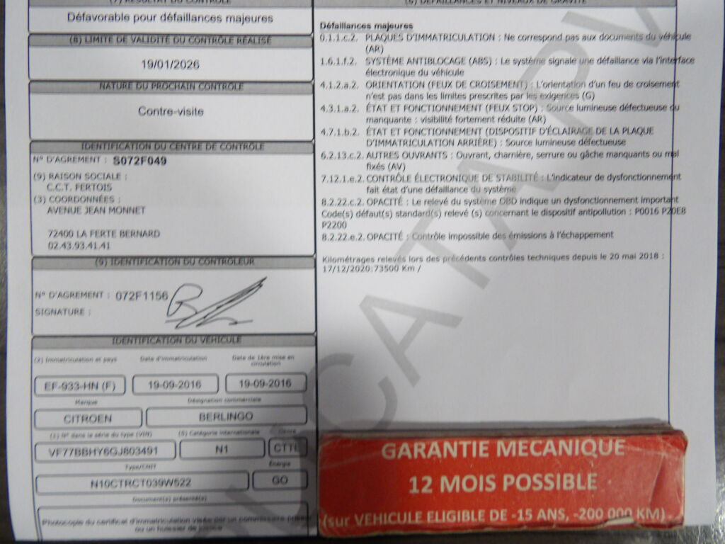 BERLINGO M BLUEHDI 100CV BUSINESS, BLANC, 5 cv, mise en circulation le 19/09/2016.