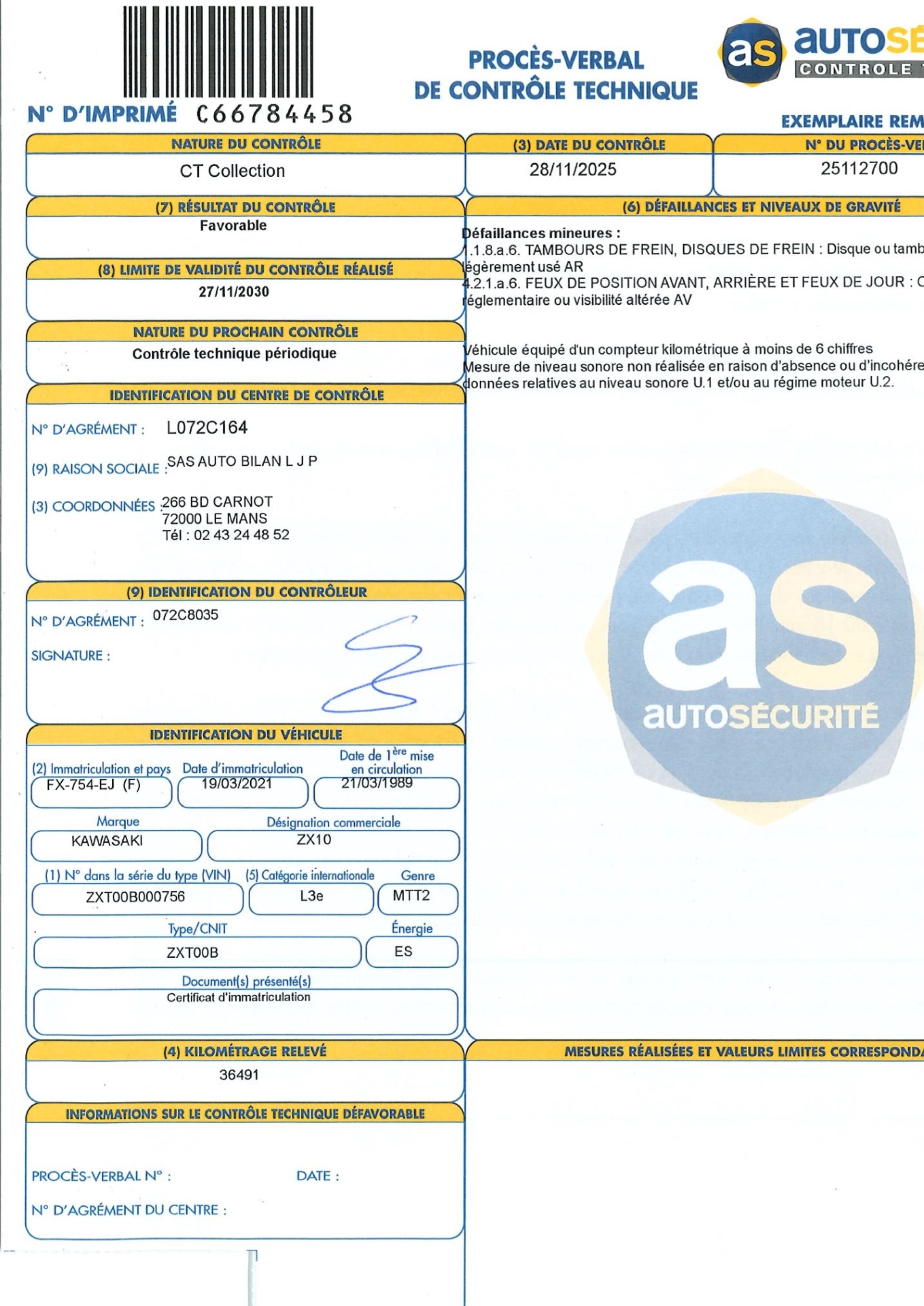 N° de cadre : ZXT00B000756