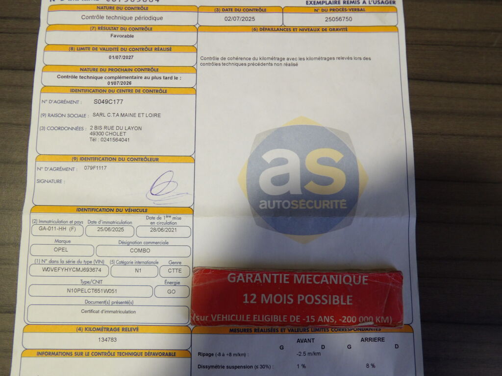 - ADHESION POSSIBLE A LA GARANTIE MECANIQUE